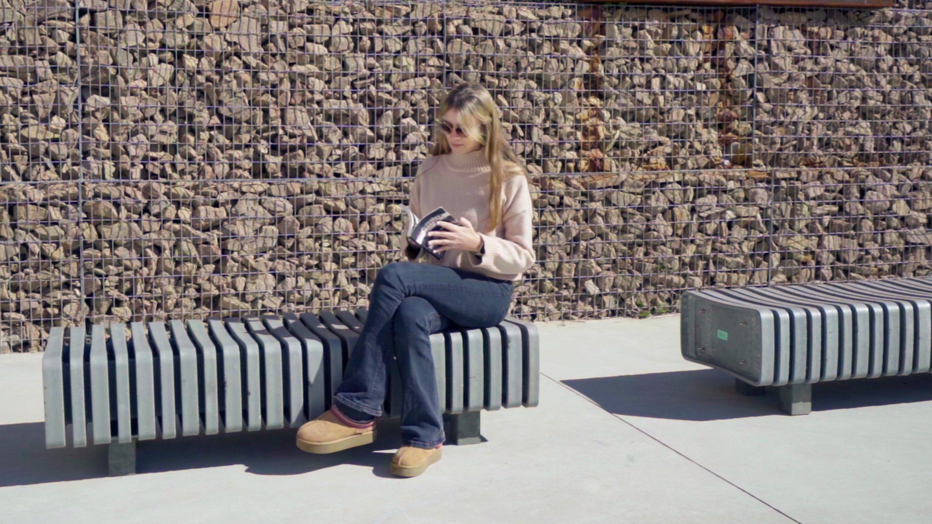 Banc de disseny VERTEBRA recte, mides totals (llarg x ample x profund) 1850x450x610 mm. A més de la seva flexibilitat geomètrica i funcional, està fabricat en plàstic ReBnew (el polímer reciclat de BENITO que està produït íntegrament a partir d'envasos del contenidor groc i no requereix cap mena de manteniment) tant els peus com el seient i el respatller. Amb un tacte agradable a l'ús. Ancorat sobre superfície preparada, amb cargols segons superfície i projecte.
