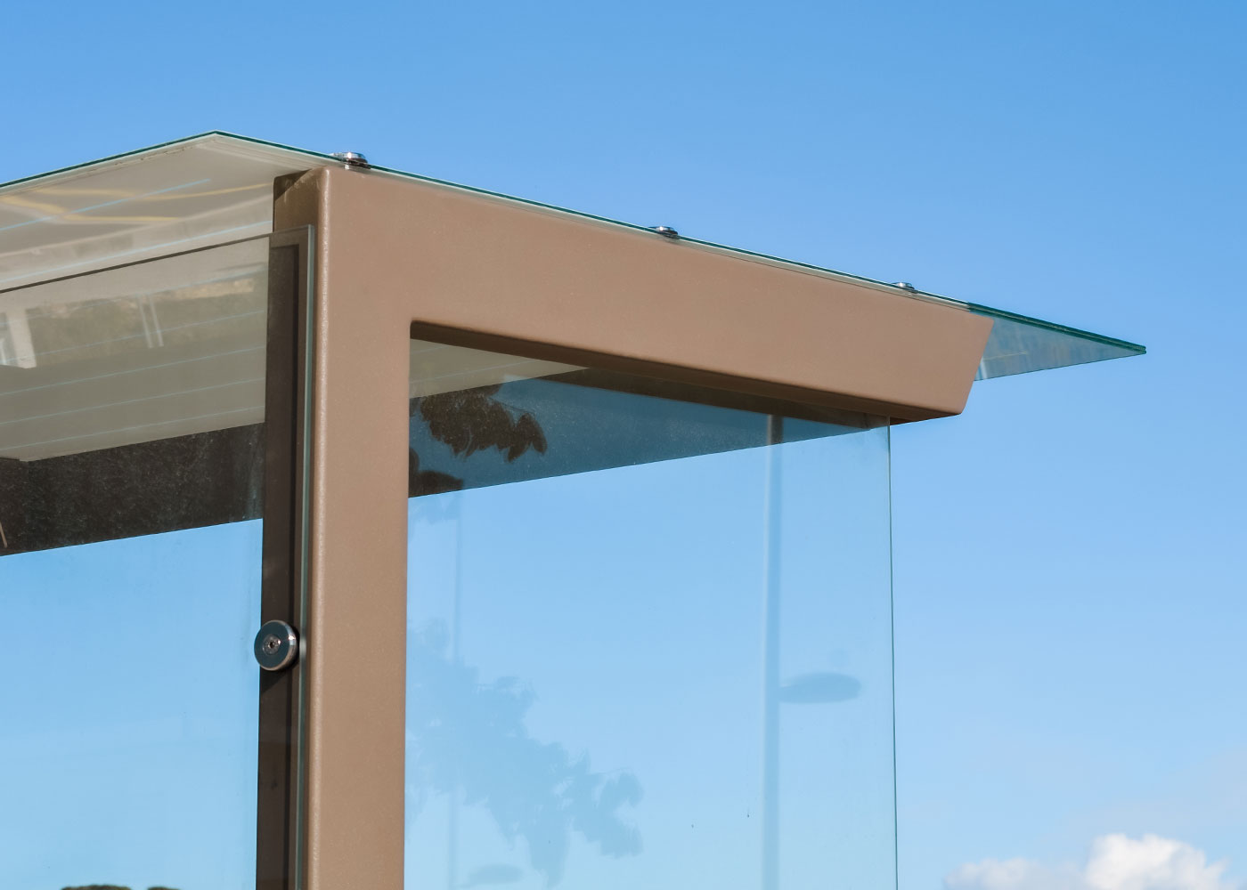 Incorpora una banqueta de fusta tropical tractada amb oli protector, que aporta confort i calidesa al conjunt, així com vidre laminat a tota l’estructura, assegurant seguretat, durabilitat i transparència visual.