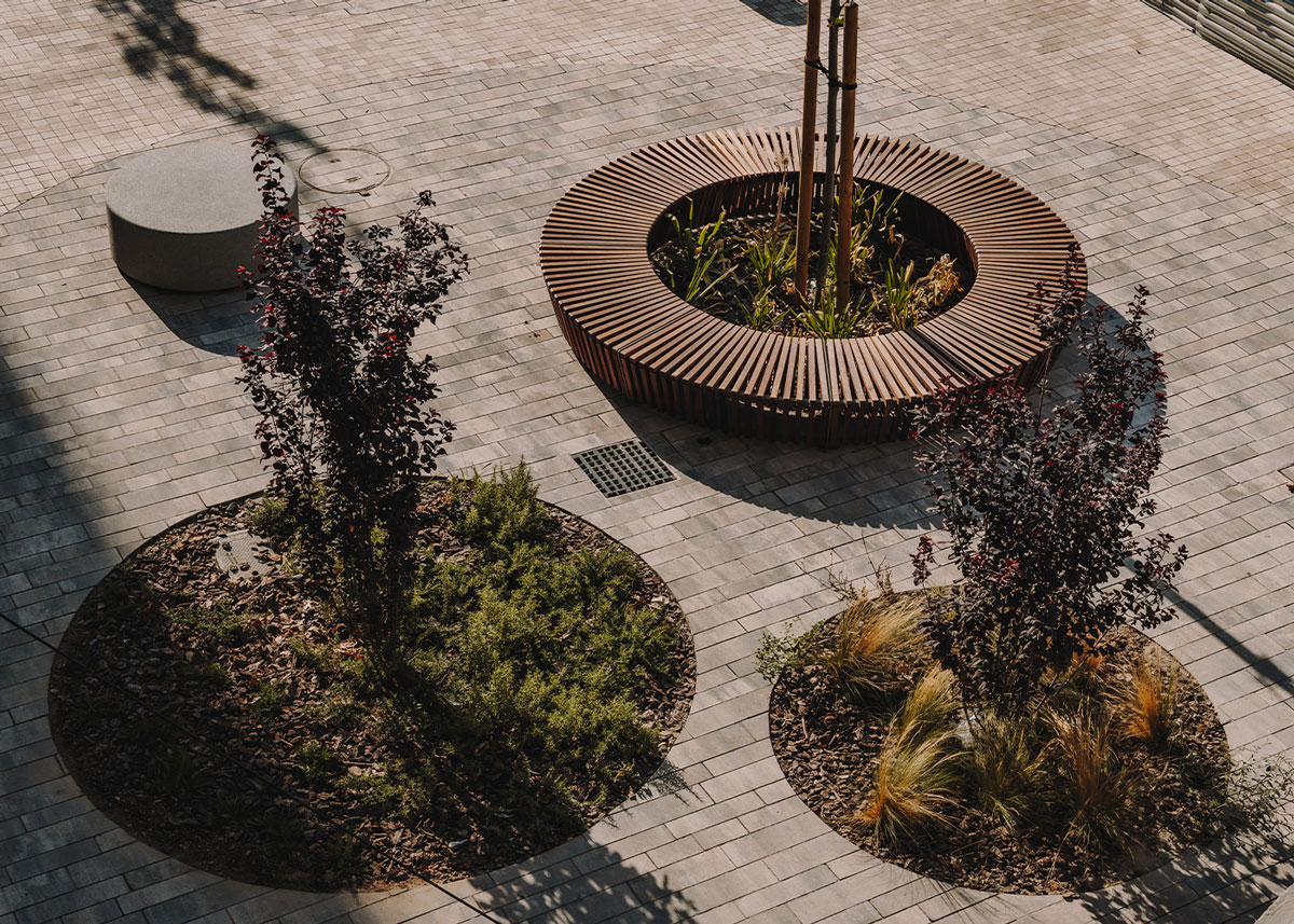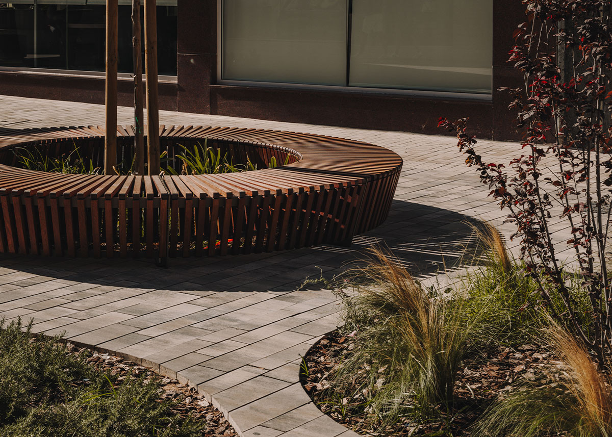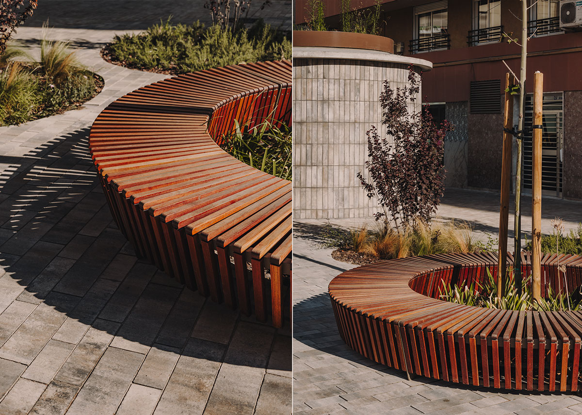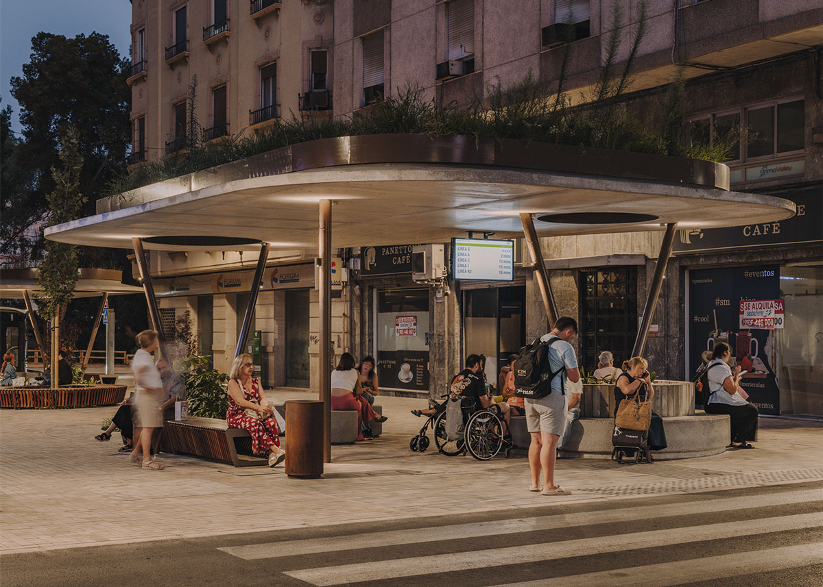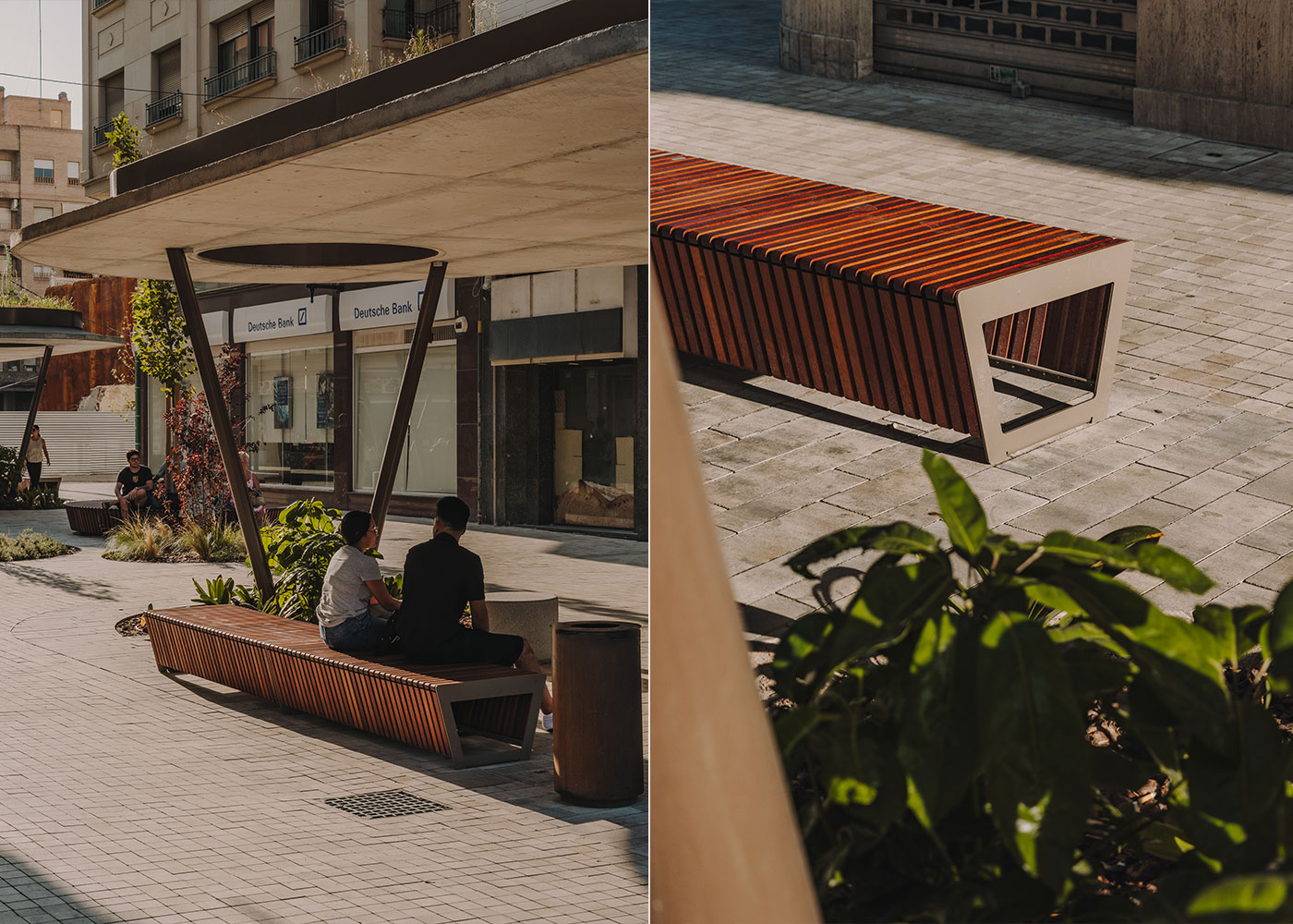 L’intercanviador d’autobusos d’Elx incorpora bancs Riga de la col·lecció Benito DESIGN+, peces modulars de disseny versàtil que permeten crear configuracions lineals, corbes o totalment circulars.