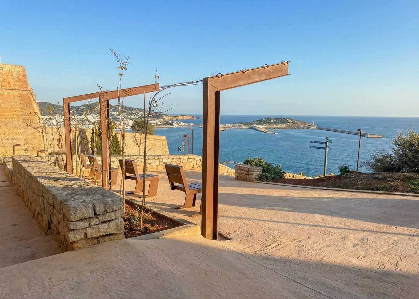 El renovat Camí del Calvari a Eivissa, inaugurat després d’una inversió de 2,5 M€, millora l’accés a Dalt Vila amb mobiliari urbà de Benito: cadires Quatro i balises Mar.