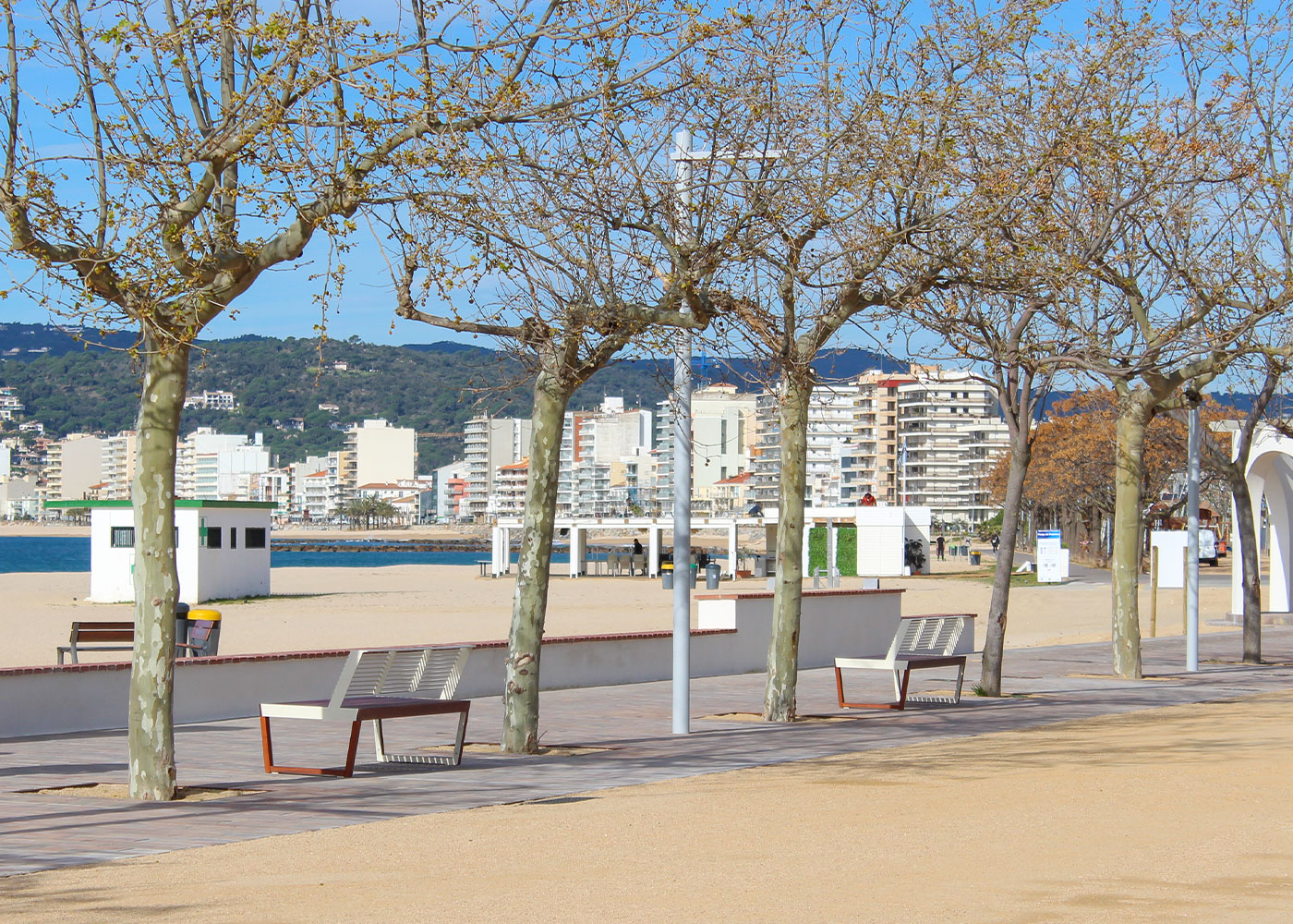 El passeig marítim de Palamós renova el seu mobiliari urbà amb bancs ARKO i papereres FLO de la col·lecció Benito Design+, millorant durabilitat, imatge i confort de l’espai públic.