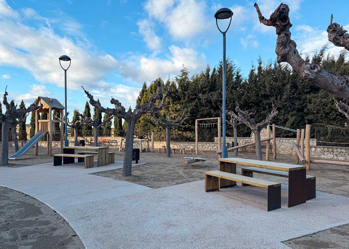 Remodelació integral del Parc del Bassot a Vilalba dels Arcs, amb nous jocs de robínia, mobiliari urbà i lluminàries Globo, creant un espai natural i funcional per a totes les edats.