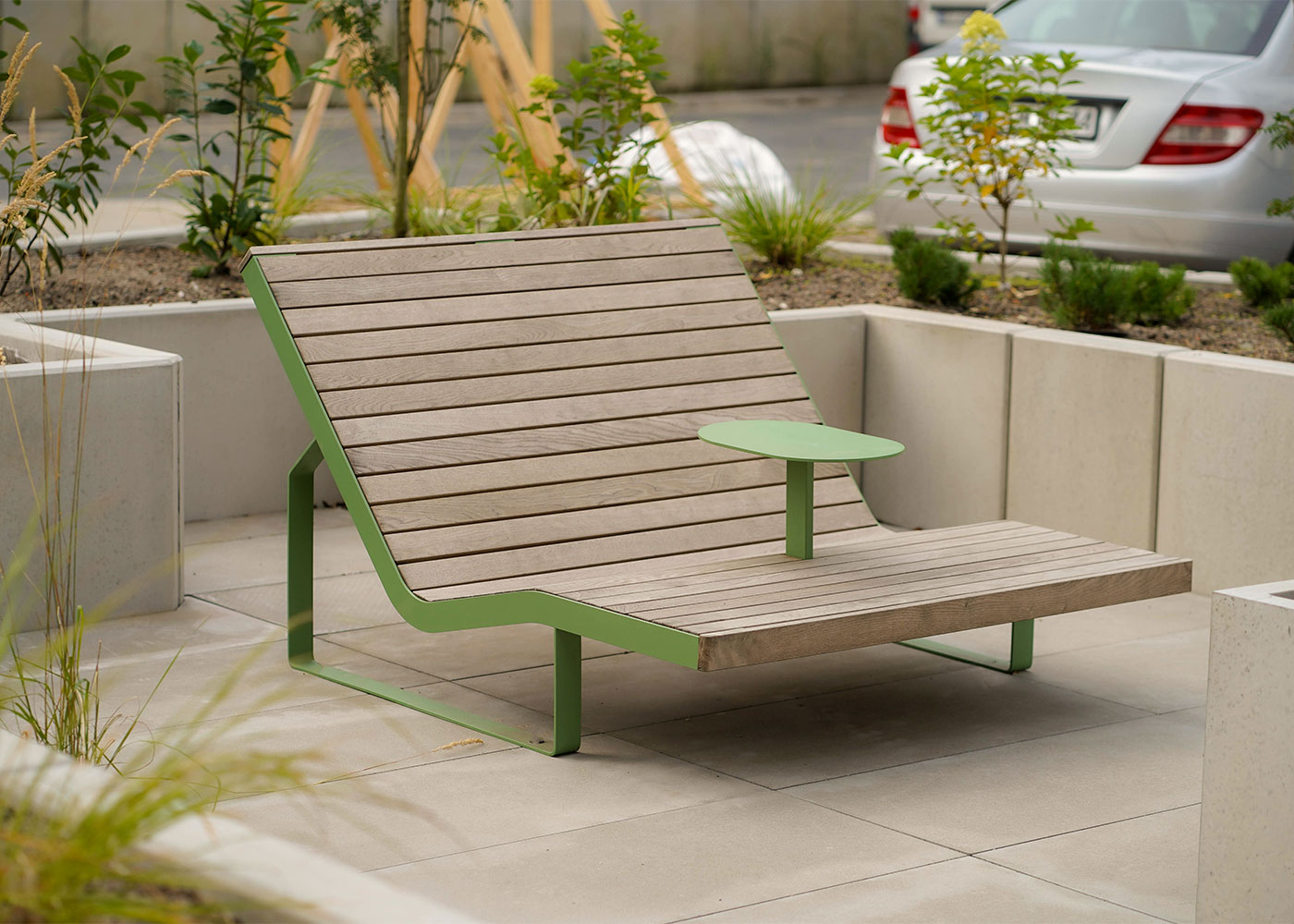 Les gandules dobles PIRO, de la col·lecció Benito Design+, transformen una zona residencial de Łódź (Polònia) en un espai verd i confortable, pensat per al descans compartit.