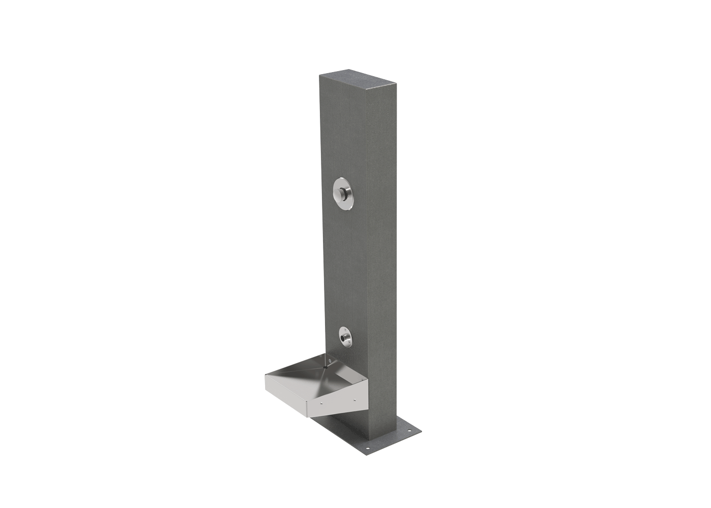 Fuente de diseño TERRIER, medidas totales (largo x alto) 300x1010 mm, fabricada en acero (tratado con el proceso Ferrus el protector de triple capa para el hierro, que garantiza una óptima resistencia a la corrosión), cubeta de acero inoxidable, incluye grifería, flexo entrada de agua y tubería de desagüe. Exclusiva para perros, ecológica. Preparada para anclaje con 4 pernos de expansión M8 según superficie y proyecto.