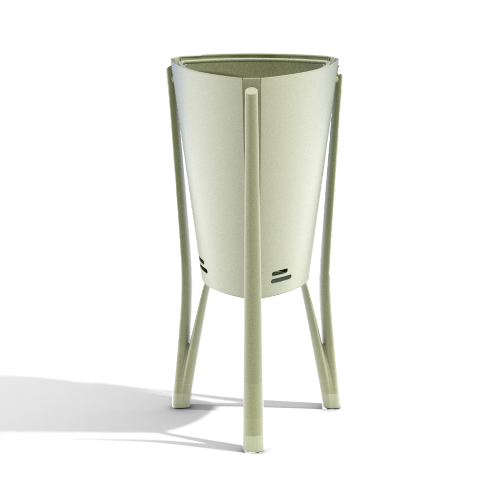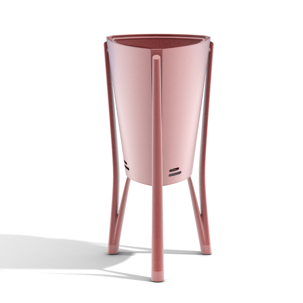 Papelera de diseño MIELEK M, medidas totales (ancho x profundo x alto) 410x410x920 mm, 80 litros, fabricada en acero (tratado con el proceso Ferrus el protector de triple capa para el hierro, que garantiza una óptima resistencia a la corrosión), cubeta interior galvanizada, cierre de seguridad autoblocante, tapa color marson. Preparada para anclaje con 4 pernos de expansión Ø10 según superficie y proyecto.