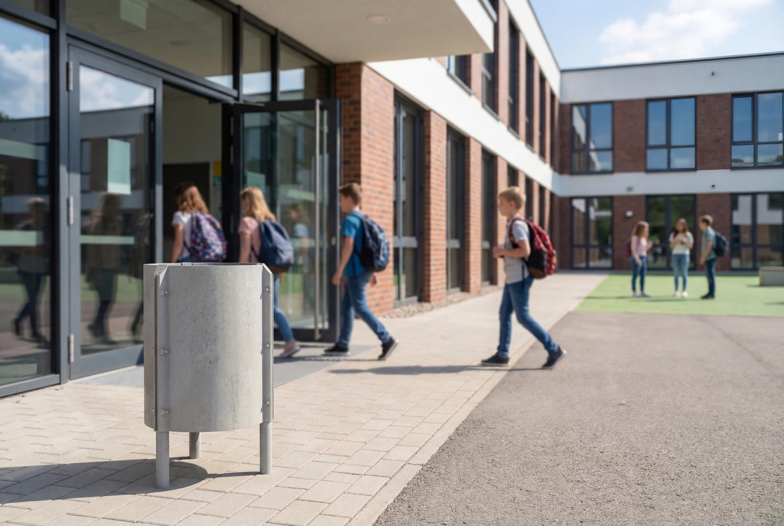 Papelera de diseño RELEU con aro, diseño antivandalico, medidas totales (Ø x alto) 450x800 mm, 90 litros, fabricado en plástico reciclado obtenido de la recogida selectiva urbana, 100% reciclado y reciclable, material durable, inalterable a la intemperie, resistente al agua y que NO requiere ningún tipo de mantenimiento. Preparada para anclaje con tornillos según superficie y proyecto.