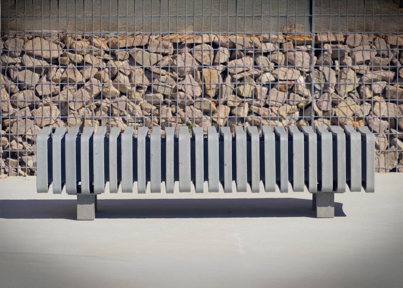 Banco de diseño VERTEBRA recto, medidas totales (largo x ancho x profundo) 1850x450x610 mm. Además de su flexibilidad geométrica y funcional, esta fabricado en plástico ReBnew (el polímero reciclado de BENITO que está producido íntegramente a partir de envases del contenedor amarillo y no requiere ningún tipo de mantenimiento) tanto los piés como el asiento y el respaldo. Con un agradable tacto al uso. Anclado sobre superficie preparada, con tornillos según superficie y proyecto.