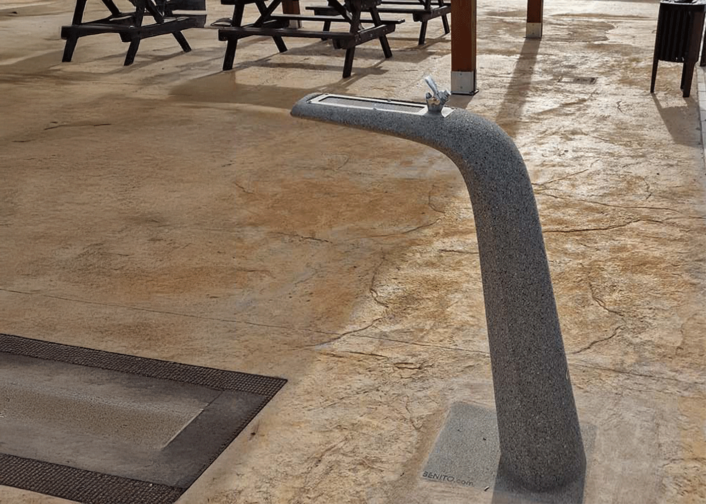 Fuente de diseño PETRUS, medidas totales (Ø x alto) 350x970 mm, fabricada en hormigón. Robusta, con un diseño elegante y liviano, capaz de integrarse en cualquier entorno singular. Fácil instalación, viene equipada con las conexiones necesarias, para la entrada de agua y para el desagüe, no requiere de rejas ni desagües vistos, sin problemas de salpicaduras, oxidación, mantenimiento, acumulación de agua, malos olores, etc.