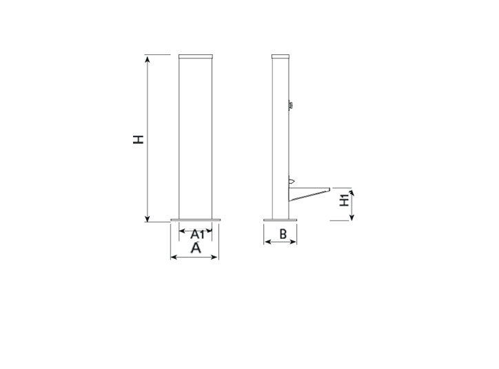 Fuente de diseño TERRIER, medidas totales (largo x alto) 300x1010 mm, fabricada en acero (tratado con el proceso Ferrus el protector de triple capa para el hierro, que garantiza una óptima resistencia a la corrosión), cubeta de acero inoxidable, incluye grifería, flexo entrada de agua y tubería de desagüe. Exclusiva para perros, ecológica. Preparada para anclaje con 4 pernos de expansión M8 según superficie y proyecto.