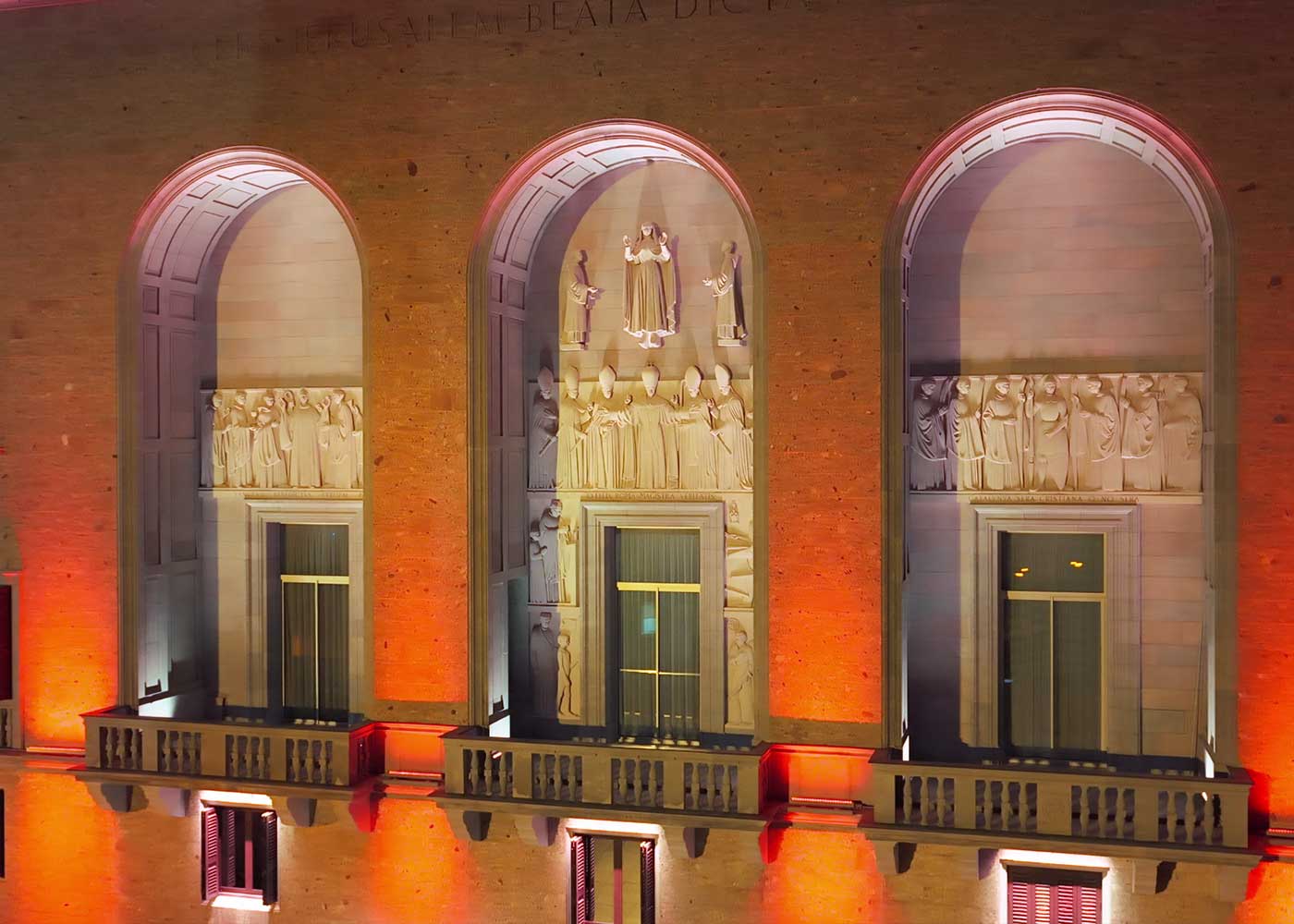 El proyecto combina tecnología, precisión y sensibilidad hacia el entorno, realzando la arquitectura y la espiritualidad del lugar sin alterar su equilibrio natural. Los modelos Milan RGBW, Lineo RGBW y Ciclo RGBW ofrecen una iluminación dinámica, eficiente y respetuosa con el patrimonio.